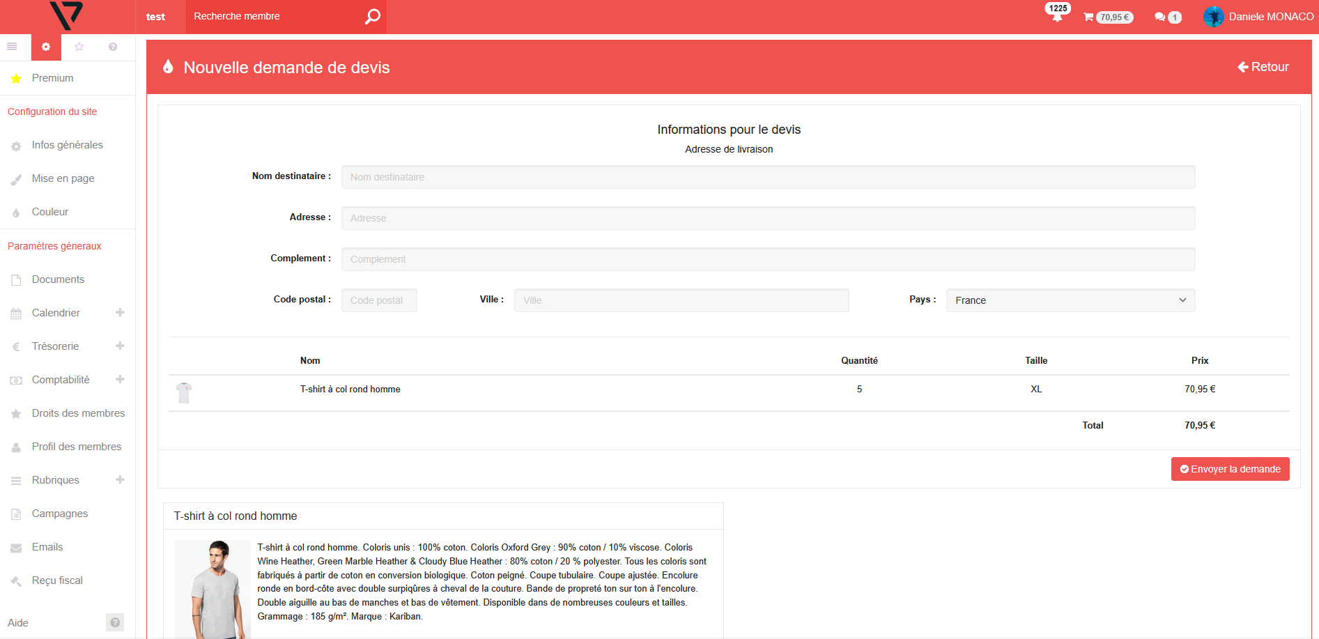 Définissez son prix de vente affiché à vos membres (cliquez sur la roue cranté).